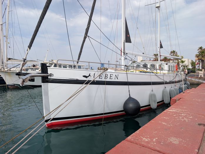 And, speaking of time, generally twice a day I walk around the marina and this morning I passed a newcomer, a beautiful ketch. She’s not likely to make any speed records but it is pretty clear that she is fresh, really fresh, from a major refit. Sadly, I wasn’t able to find any information online about her. She calls from Hamburg, Germany. What nice lines. Actually only 60′ long and yet looks a lot bigger. I stopped to see if I could get information from someone but nothing beyond confirming recent refit. The AIS track shows that she just got in from northern Europe, I think beginning in the Netherlands.