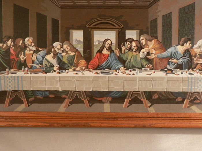 This piece is a reconstruction of a pattern copied from the table cloth pattern in the famous painting by Michelangelo, the Last Supper.