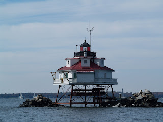 Further down the bay we passed one of the last screw pile lights left on the bay . The Thomas Point Light is quite a sight. In order to get this close to get a shot I anxiously watched my depth sounder as it showed less than 5 feet under the keel. Had I misjudged the depth I would have been able to take photos of the light as the sun set. Not my first choice.