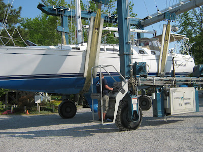 Amazing how big she looks in the slings. Actually, the closer to land she gets the bigger she seems. Get her off shore in nasty conditions and she seems down right diminutive.