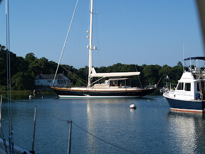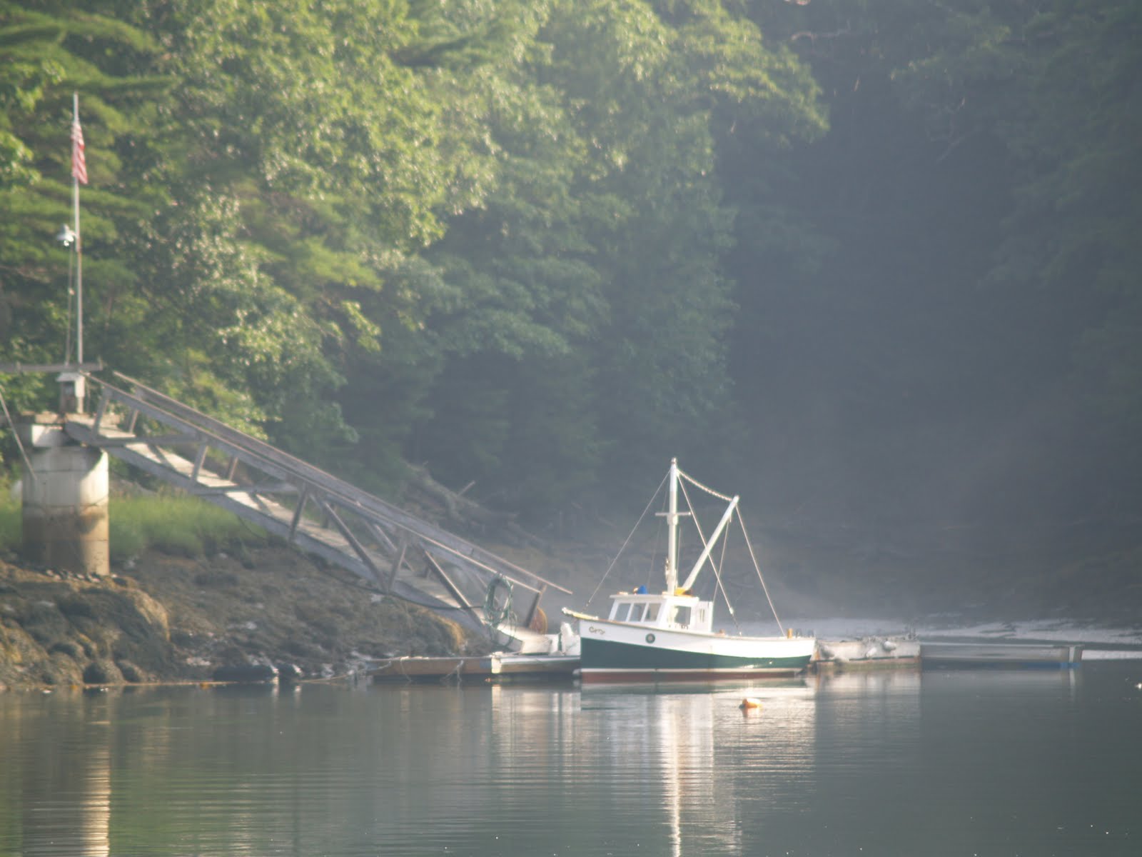 The scenery here is wonderful with the light changing on a nearly hourly basis from ephemeral mists in the early morning to the dramatic light and dark of the sun on the pine trees. Happily, the temperatures are a lot lower now than we had experienced in Annapolis, CT and Martha’s Vineyard where things topped out in the 90s most days. This morning I turned on the Espar heater for the first time this sailing season. It went down into the mid 50s last night. Very pleasant.