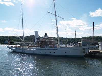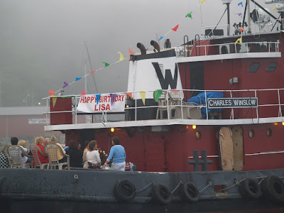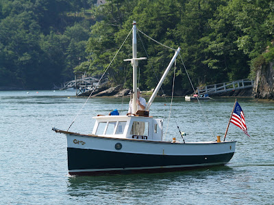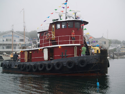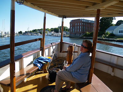 On a somewhat more sublime note, this old tug motored by one evening with what looked like a very comfortable “crew” aboard. What a nice way to enjoy a cocktail cruise in BoothBay Harbor.