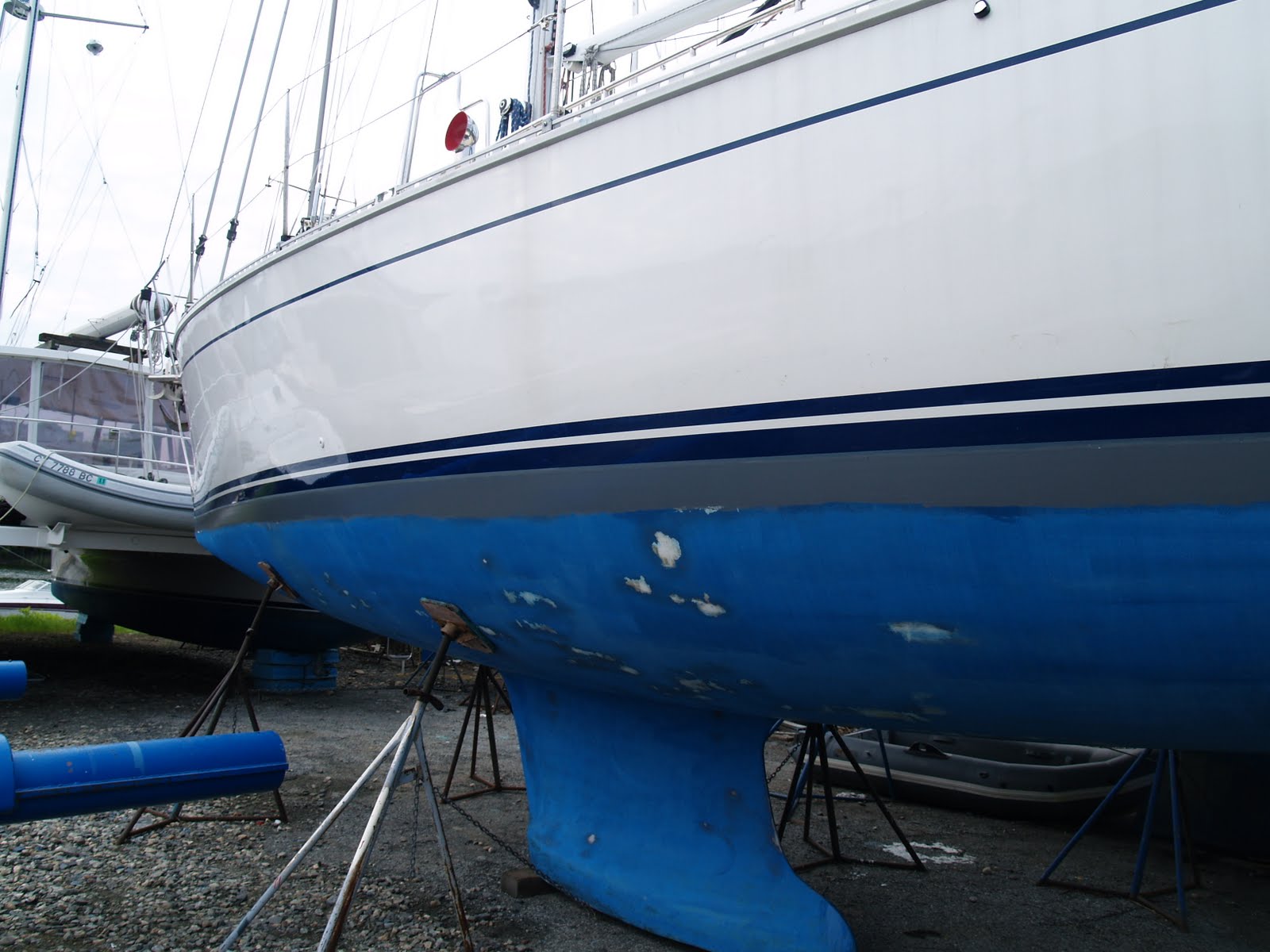 The SAGA 43 was conceived as performance cruiser, just what I was looking for. I wanted a boat with good pedigree that was also fast and comfortable, with more creature comforts than we had with our Tartan 37. We looked in Annapolis at what would eventually become our boat within a month, and now just one year ago at the Annapolis Show. We decided immediately that we wanted to purchase “Spirit” and put in a bid the next week. With delays on the seller ‘s side it wasn’t until February of this year that we finally closed on the boat and got started on the upgrades we planned to do prior to launching. We upgraded the electronics to include a Raymarine e-series radar plotter, new canvas and some additional weight in the keel. We knew that many of the earlier SAGAs were quite tender, a combination of their narrow beam and a bit under weight in the keel in the shoal draft verson. We ordered a 1,200lb “shoe” from Mars Metals in Ontario and had it installed. It went on perfectly and I looked like it was part of the original keel from the very beginning. Having that extra 1,200 lbs proved to be just the trick as Keith Reynolds (the patron saint of SAGAs) predicted. Now she is plenty stiff and able to carry sail as needed. Yes, she does heel over a bit but no more than our T37 did. With these modifications we were off and running as of mid April and ready for our summer “trials”.