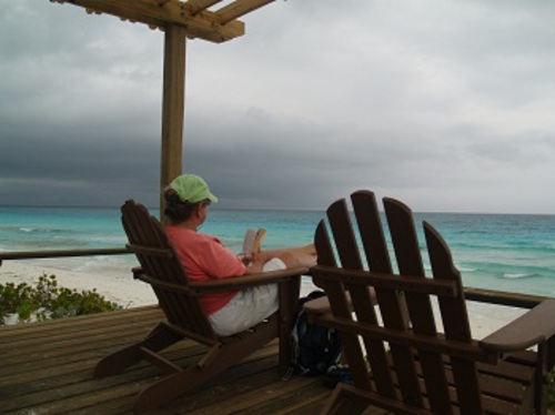However for a price, and I won’t go into what that price was except that it was a lot more expensive than dropping our anchor in some secluded anchorage, we were able to enjoy a few days on this wonderful island.   Perhaps this shot of Brenda reading on the beach, says it all.