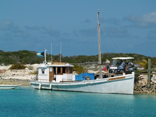 Interestingly, the only reasonable way to get supplies to the island is by boat and the one that services this island is a 1920s vintage Chesapeake Bay Oyster boat. The owner told me that he brought it to the Bahamas over 30 years ago when he was in his 20s. The contrast of this vessel to the massive yachts was very marked.  Getting anything to these islands is a major effort and the prices reflect it.