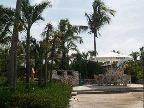 The view to shore here from Pandora is really nice.  This spot gives the impression that you are in some remote island retreat.  Of course, that impression is somewhat belied by the number of homes lining the shore.  Very pretty, never the less.  I love the whole palm, sandy beach and thatched umbrella thing.   This is the famous “Pete’s Pub” as viewed from Pandora’s bow.  I’ll bet that they sell drinks that have little umbrellas stuck in them.  Perhaps 11:00 is too early to confirm that.  Perhaps later.  Yes, later… that would be good.    And, I expect that we will be able to find our way there and back without getting lost.  Pretty close.  Well, lots to explore and I hear that the ocean is very close, just over the dunes.  I can hear the surf pounding.