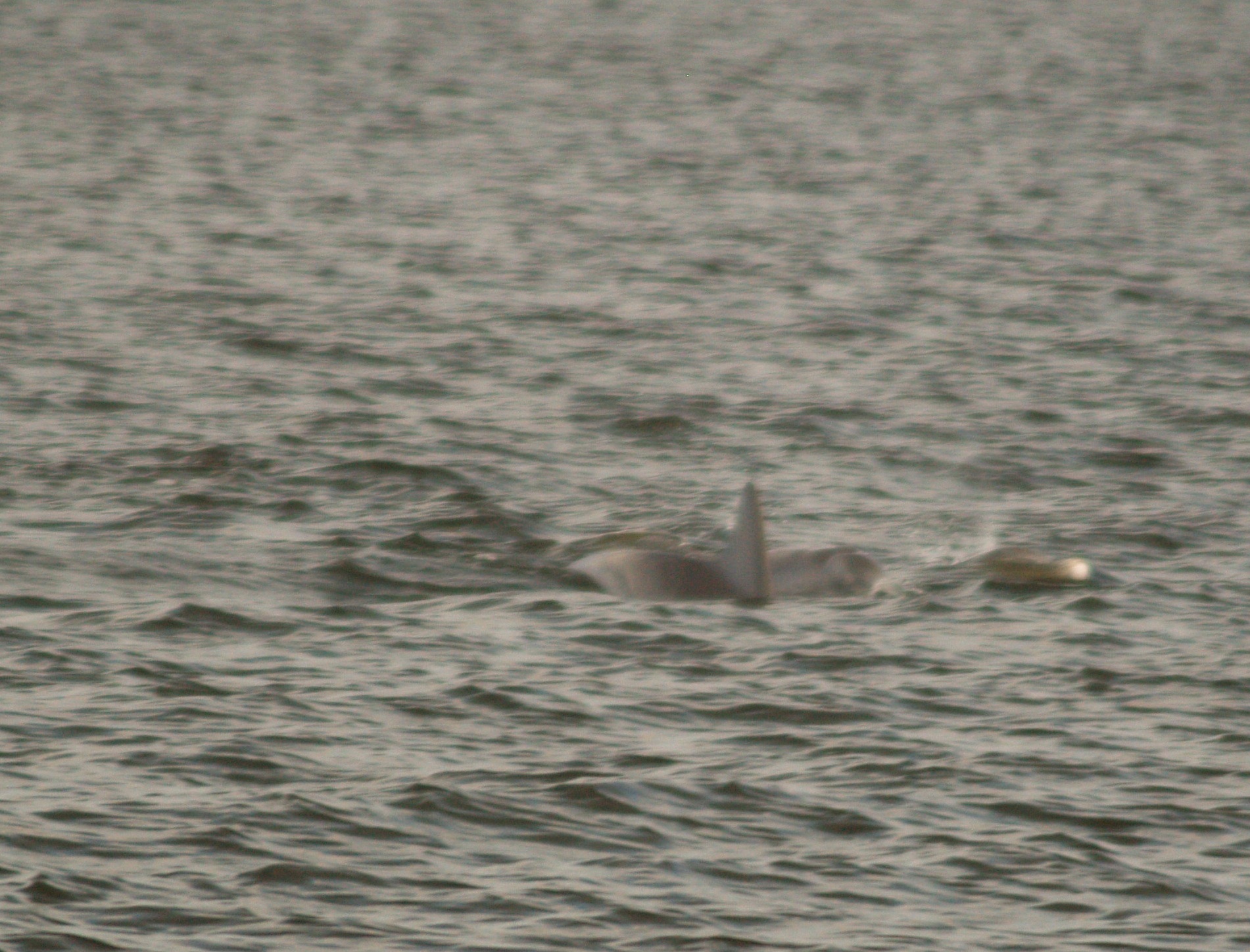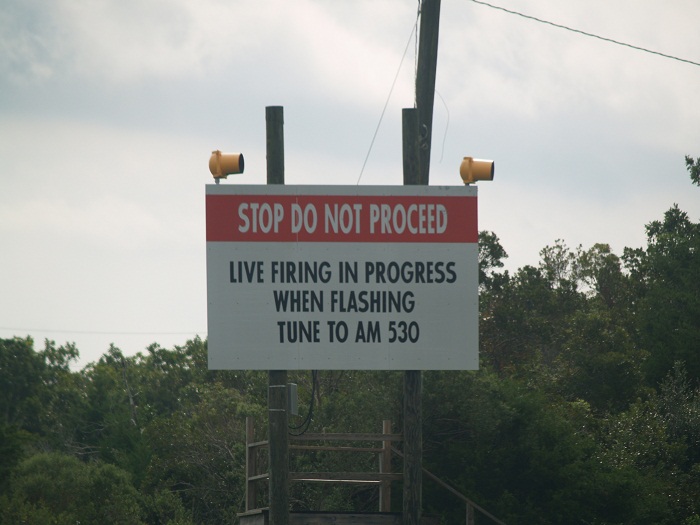Yesterday we saw our first dolphins as well as some pelicans.  I have had a really tough time getting shots of dolphins but was able to get a shot, even if it’s a bit blury.  Also, the pelicans weren’t very close.  However, it is a photo of a pelican and they say that blogs are better with photos, even crappy ones (editor’s assumption).  I guess you’ll have to be the judge.  Judge “nicely” please…  This is probably a photo that screams “you had to be there”.Today’s run takes us through Camp Lejeune, a major Marine base.  The ICW goes right through the camp area and there are some intimidating signs along the way to warn you when they are conducting live fire exercises.   Two years ago Brenda and I anchored in a small harbor within the camp’s boundaries and near us was a huge concrete ramp that provided access to the waters for hovercraft.  We didn’t see any during our visit but others have told me that it’s pretty amazing when the marines come blasting through on one of the big hover craft as they blast down the dirt road and into the water, throwing salt spray everywhere.