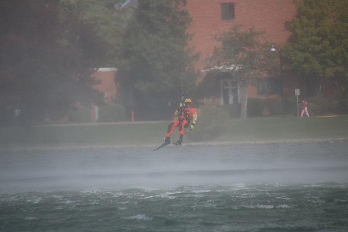 All and all, it was a totally awesome display. It looked plenty hard to do on flat water and I can only imagine what it’s like to rescue someone in 40′ waves and hurricane force winds. Not for the feint of heart.