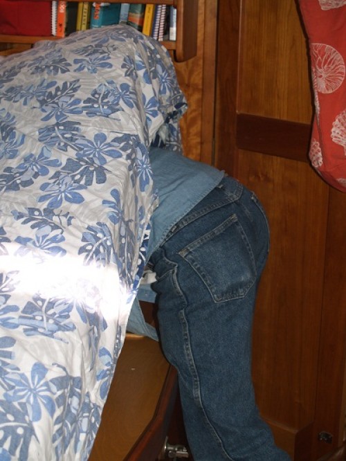Oh yea, speaking of “a horses ass”, this shot of me making our bed yesterday morning seems to evoke something equine. Getting under the mattress is the only way that I can get the sheets secure and tight. And, anyone who knows me realizes that I like things just so. Tight is good. Who says that I don’t put photos of myself on the blog.