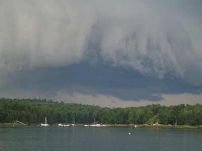 On our trip over we were hit by an impressive thunder storm and after anchoring, another passed by to the north. What dramatic clouds and a display of the raw power of nature.