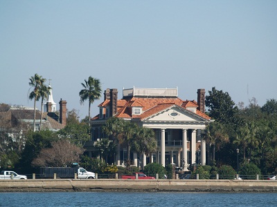 We left Charleston on Thursday to continue our journey south, working our way to Beaufort. As we were leaving Charleston we circled under the bottom of Charleston and got a good view of the lovely historic homes on the waterfront. Yes, these homes look as good from the water as they do when walking around Charleston. Love the whole palm tree thing.