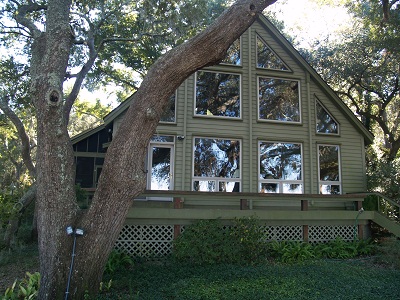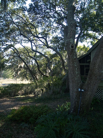 How’s this for a view of the water from their back yard? At night the live oaks are lit with flood lights.