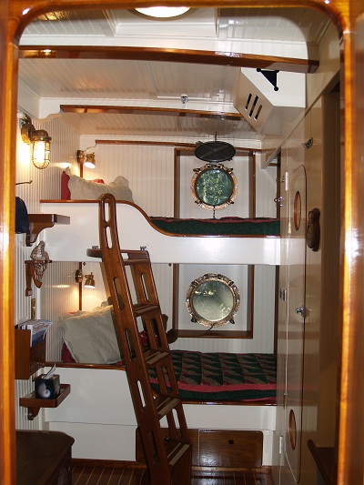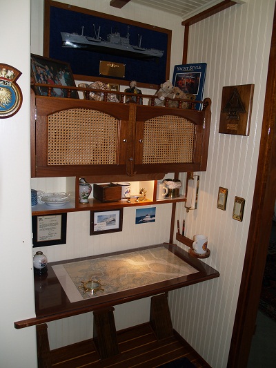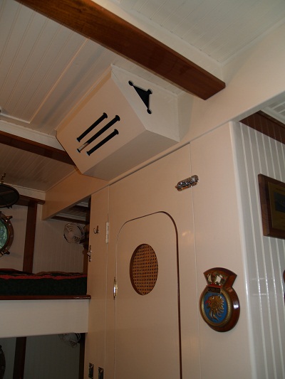 The details are impressive, including ships knees and curved deck beams overhead. There are even port holes, complete with blast covers. You can almost imagine the movement of the ship if you sat here to write a letter.