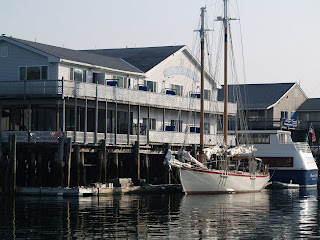 No, better to think about sailing for a few days. I’ll close with a photo of one of the say schooners on a wharf just off of our stern.