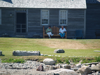 I had a nice talk with one of the caretakers, just to be sure that it was OK for me to be using one of their moorings, and he confirmed that the nice lady in the white slacks is Betsy herself. He said that she enjoys watching the sailboats as they ride on her mooring. That makes me happy. On our last visit, Brenda was thilled to share waves with Betsy. Today she was pretty sure that Betsy and her companion were watching her knit aboard Pandora. That sounds about right to me.