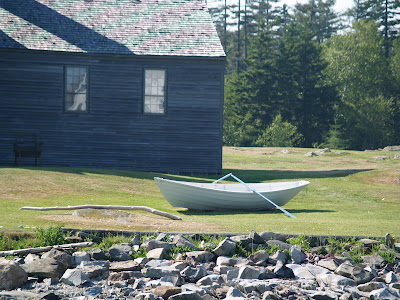 >It’s Friday afternoon and we just finished a 15+ mile, fairly sloppy with big seas of up to 6′ and not quite enough wind, sail from Booth Bay Harbor to Allen Island, the summer home of the Wyeth family. That’s the Andrew and Betsy side of the family. Just off shore from Port Clyde, the islands Allen and Brenner enclose a lovely thoroughfare complete with a few moorings. While we have been coming here for many years, I am still in awe of how beautiful this place is. While there are many impressive places in Maine, or elsewhere for that matter, it’s rare to see as refined a display of what can be accomplished when you have both money and taste.