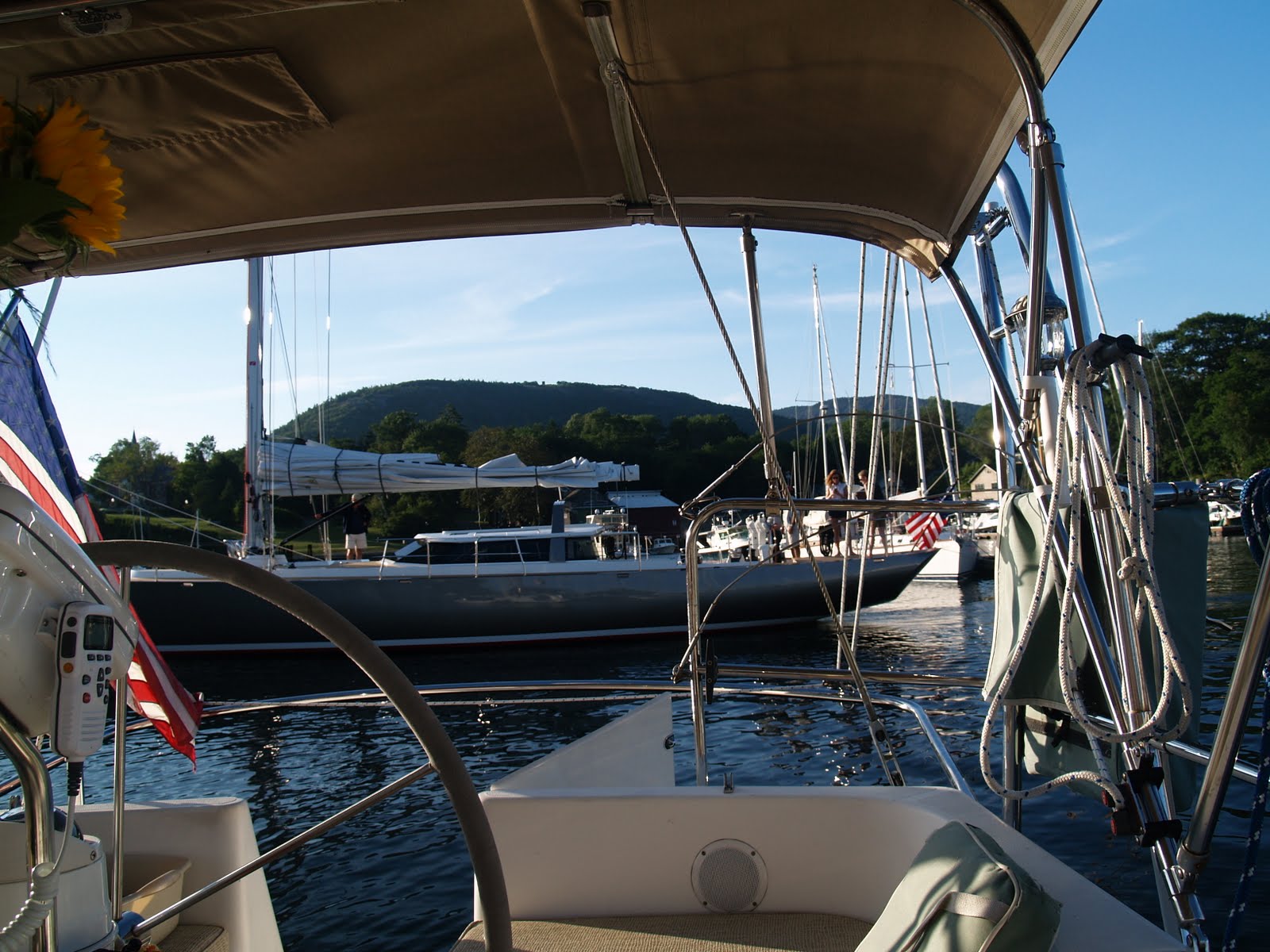 After a short rest at the top I was able to make it back to help Brenda retrieve the laundry, take a shower and get ready for a visit from our friends off of another SAGA 43 who had spent the last two summers sailing in Nova Scotia and just returned to the states. After listening to the talk about their trip I am not so sure that it would be for us. It’s very remote and you can go for many days without seeing another boat. I am way to social for that, I expect.