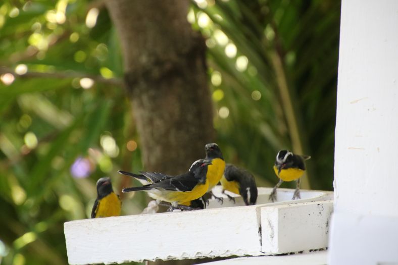 And some visitors, bannana twits. They are fruit eaters so I put out some sugar water.