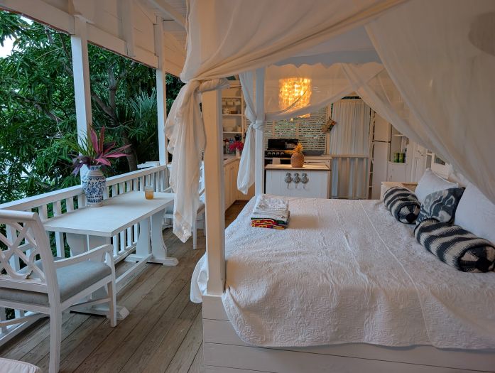 My room overlooking the harbor. Kitchen, sitting area and bed. Very charming.