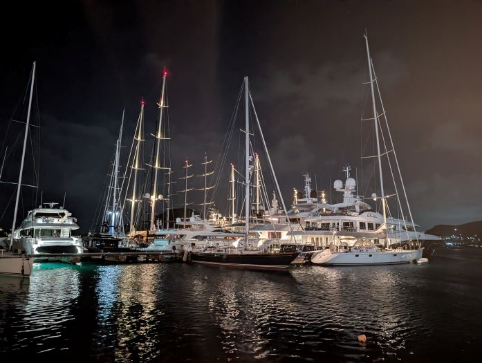 And, of course, what is a blog post about Antigua without a night scene of the yachts in the harbor?