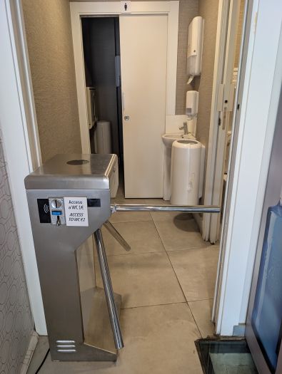 As you can imagine, any dining spot adjacent to such a popular attraction will get a lot of “drop ins” looking to use the bathroom. How about a toll? Like the Strait of Hormuz but cheaper. Actually, I learned that it was “fake news”, just there to keep out the rabble and not us as we had a glass of wine.
