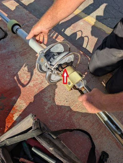 You can see the blown bearings under the drum. Had I not noticed this issue, the furler would eventually have jammed and that would have been a huge problem. Note the brown area near the arrow. There isn’t supposed to be a gap there. It’s a sealed bearing, not sealed anymore.