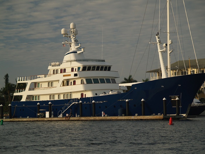This is the view that greeted me today when the sun rose. Pretty nice. As we passed along the waterway, we spied an endless number of magnificent yachts. I feel pretty good about Pandora but she’s a canoe compared to these babies. This one is classified as an “expedition yacht” which means that she can go about anywhere in the world.