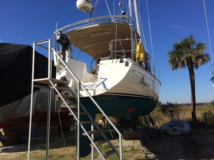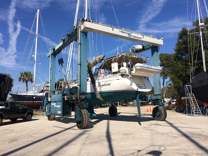 While Pandora was on the hard I had the hull buffed and waxed. They did a great job. How about this shine? Oh yeah, and Terri, the boatyard office manager, will even take you to the Jacksonville airport if you need to drop a car or get picked up from a flight.