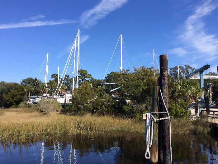 On top of all that, there’s a great view of the marsh to boot. Even Pandora got a good view as she was right near the water.Last night we had a nice simple meal aboard for our first night on Pandora. It was pretty windy so I can’t say that we slept very well. It always takes a few nights to get used to the noises of being aboard but I am sure that we will settle in in a few days.