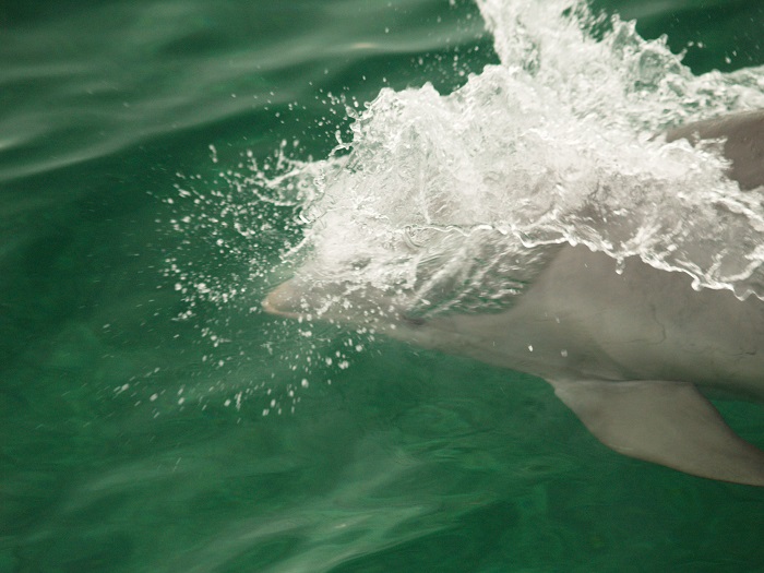 As I said, I have been here for a week and the weather has been just about everything we could imagine during that time, short of a hurricane. It’s been fabulously sunny, torrential rain, overcast, dead calm and windy. Yesterday Brenda and I headed out to empty the holding tanks (you don’t poop in your nest). We left the harbor and headed over the banks for a few miles. Along the way, a pod of dolphins visited. It was just great. They cavorted on our bow pressure wave for a bit and then disappeared as quickly as they came. I find them endlessly entertaining. As quickly as they arrived, they were gone.