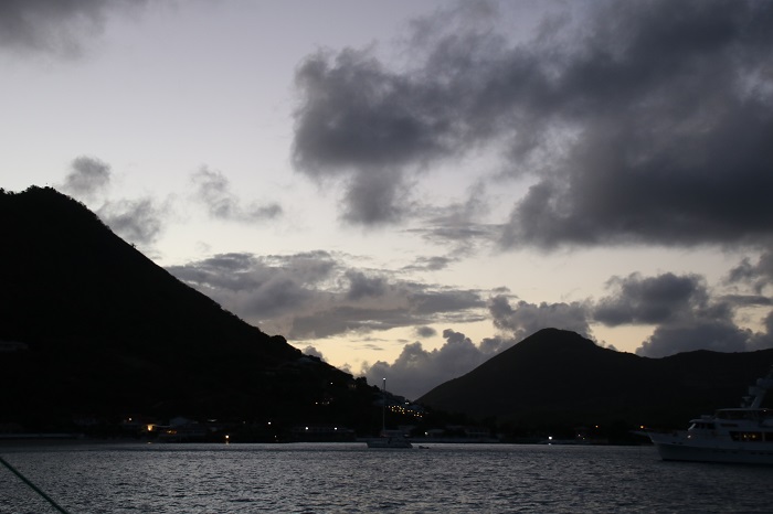 It’s 6:30 on Sunday morning and we are anchored off of the capital of French St Martin, Grande Case. The couple we buddy-boated with for the crossing yesterday, Free Rein suggested that we stop here as it was less congested than the harbor off of Simpson Bay Lagoon, Marigot, on the French side of the island. We were both concerned about approaching the anchorage in the dark and trying to find a spot to anchor among all the boats.