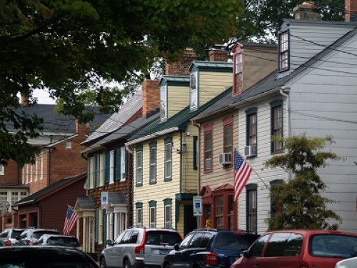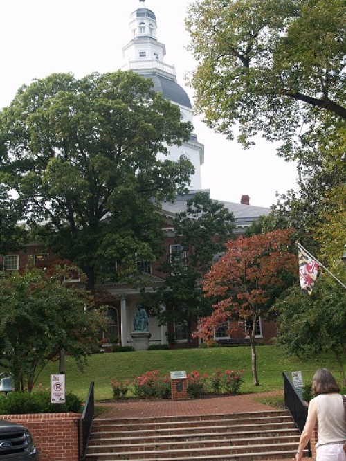 Yesterday Brenda and I walked around enjoying some of the older areas of Annapolis adjacent to the Naval Academy. This street is immediately adjacent to the wall on one side of the academy.This is similar to the view from their back yards, the academy dome.
