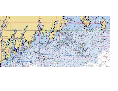 Zooming in shows how tightly packed the boats are in the inner harbor. You can also see why the outer harbor can be bumpy with that “Camden Roll thing”. It’s pretty exposed. Pandora is the boat at the closest point on the second row from the left. She looks really tiny from here. When people say that 43′ is big, I always say that the size of Pandora has to do with how close to the dock she is. When you are close to something hard she seems big, when out of sight of land, so small… Or, better put in the Breton Fisherman’s prayer, “Oh God, thy sea is so great and my boat is so small”.